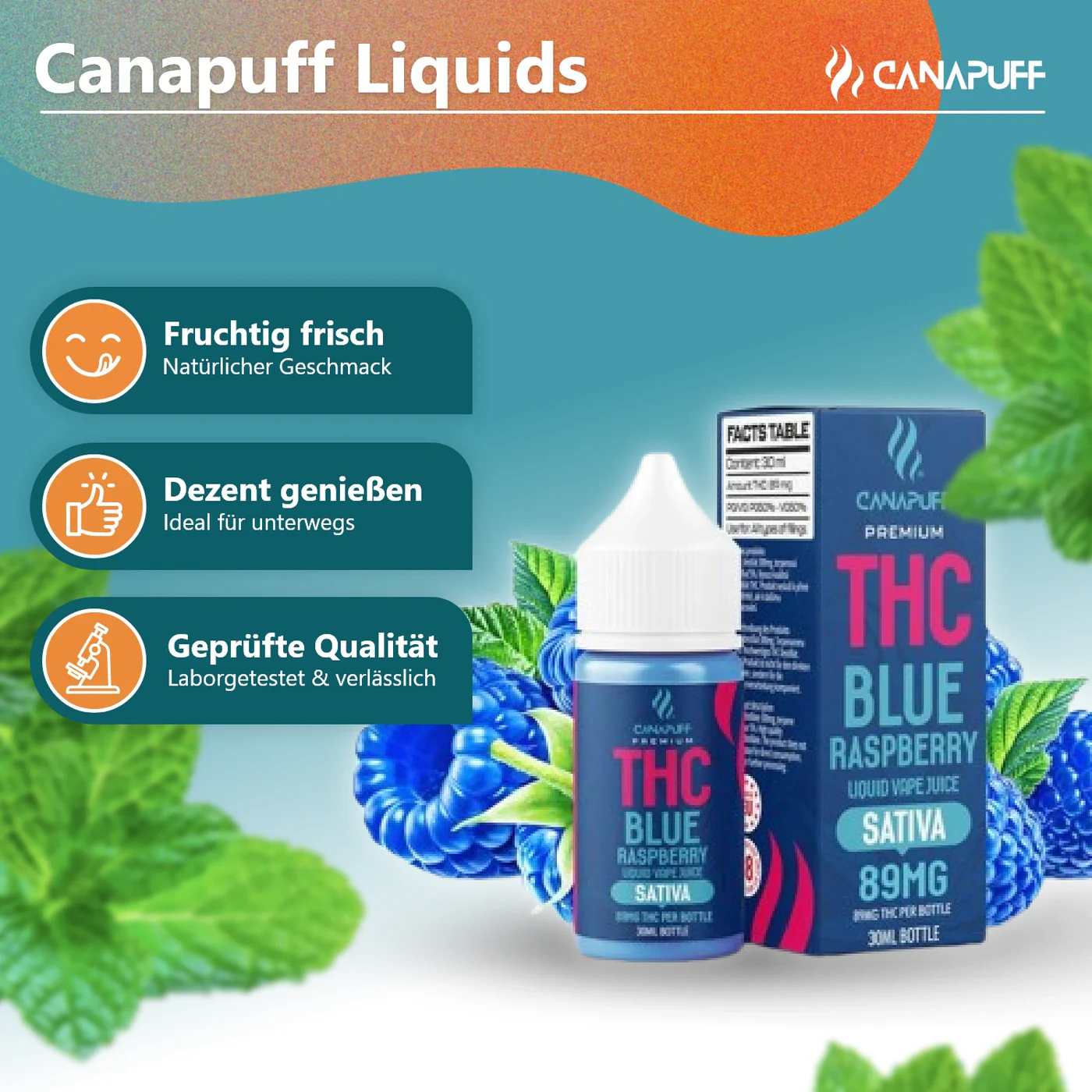 Mit dem THC Liquid Blaue Himbeere 89 mg 30 ml von Canapuff erlebst du ein fruchtiges Aroma, hochwertige Verarbeitung und ein modernes Vape-Erlebnis – perfekt für alle, die intensiven Geschmack und Premium-Qualität schätzen.