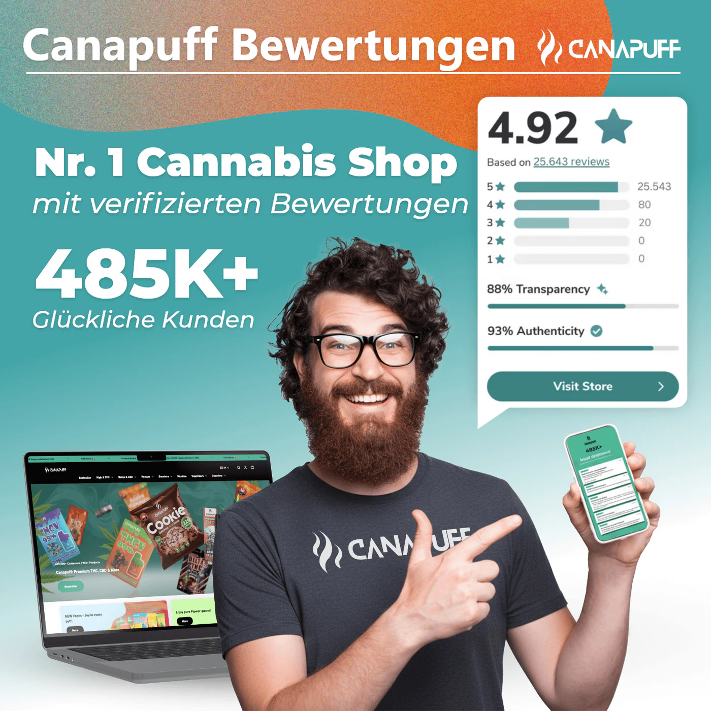 Canapuff steht für hochwertige Cannabisprodukte, die mit Leidenschaft und modernen Herstellungsverfahren entwickelt werden. Die Marke kombiniert Qualität, Innovation und sorgfältig ausgewählte Inhaltsstoffe, um ein konsistentes und genussvolles Erlebnis zu bieten.